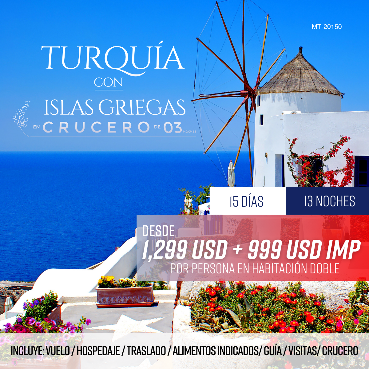 - 03 noches de crucero por las Islas Griegas.